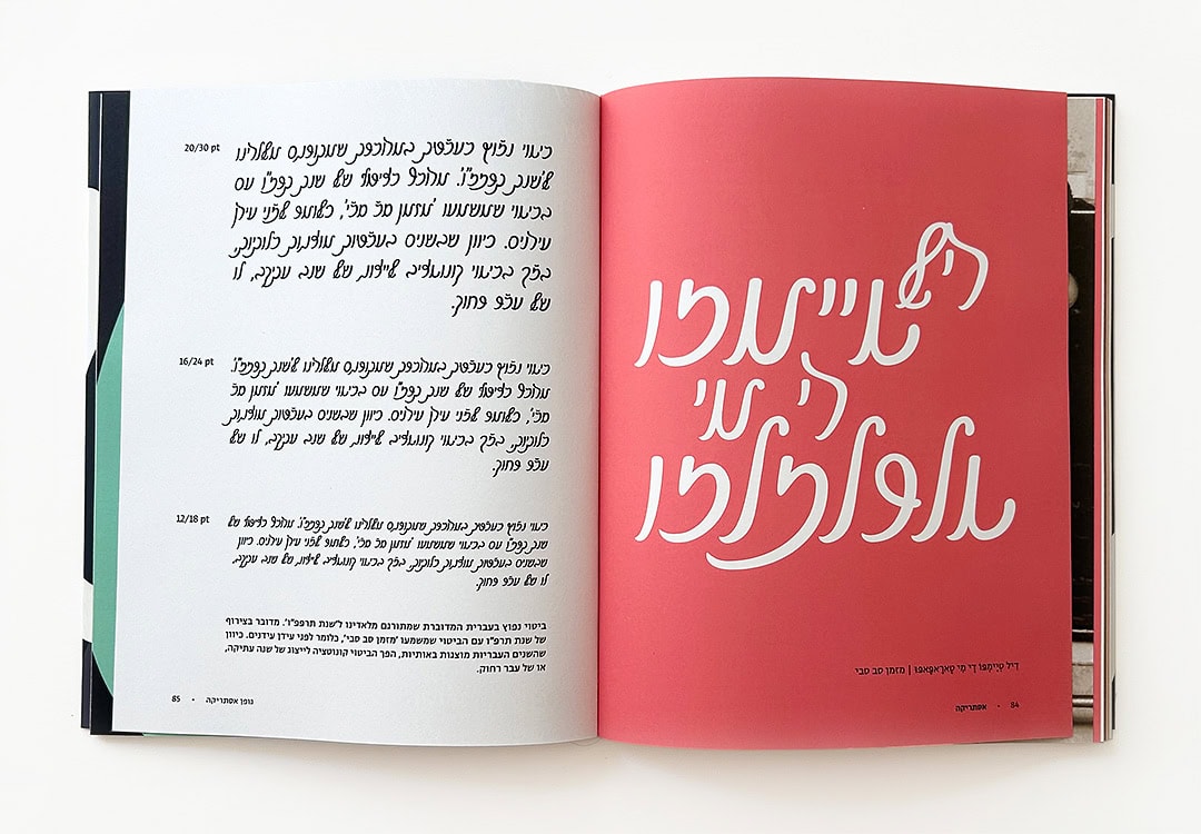 מכיוון שאין תקן אחיד לכתב הזה, היא נדרשה "למשטר" אותו בעצמה: לבחור מתוך שלל וריאציות את הקווים המנחים לפונט אחד מגובש. אותיות שהחלו בקו עבה וכתמי והסתיימו במשיכת דיו דקיקה, זוויות קלה לימין, ליגטורות מפתיעות – כל אלה הפכו לחלק מהמכלול העיצובי שהרכיבה. כך שלא מדובר ברקונסטרוקציה נאמנה של כתב היסטורי, אלא בפירוש מודרני, חופשי אך רגיש, של מסורת שכמעט נעלמה.