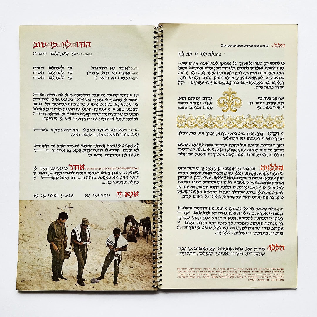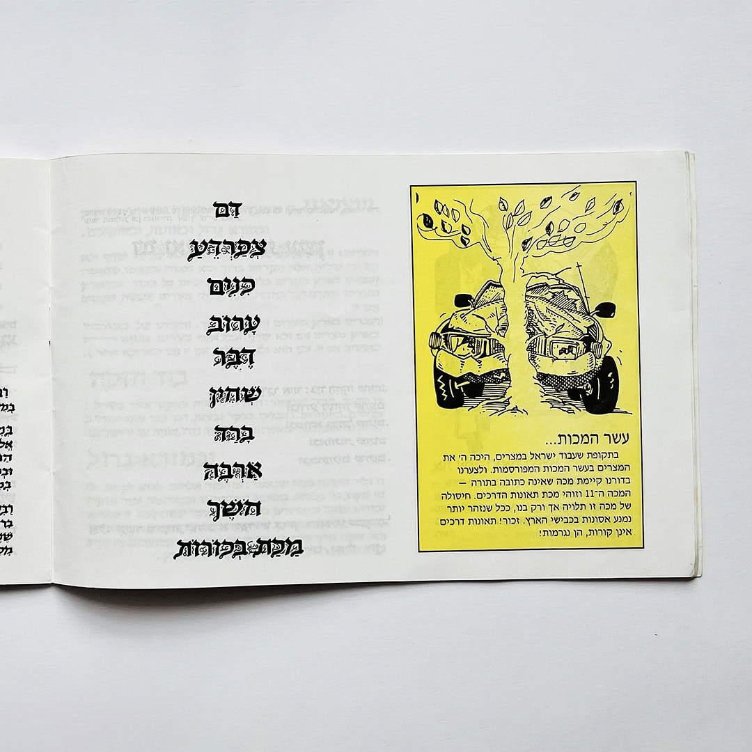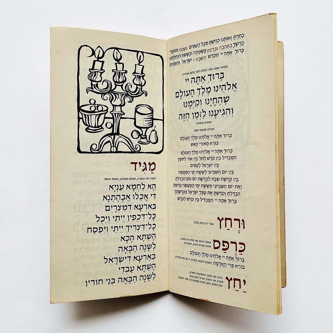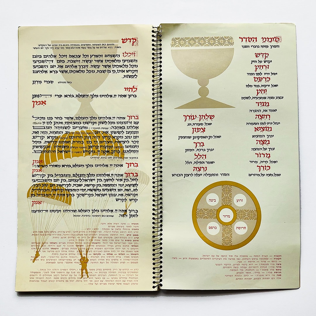 בידי שתי הגדות, לכאורה שונות זו מזו, אך שואבות השראה יחדיו ממקור טיפוגרפי. הראשונה, ״הגדה של פסח מעבדות לחרות״, שהוציא ניסן פלג ב־1971, היא מסמך תקופה מרתק. ההגדה בפורמט מוארך, מחוברת בספירלה ומעוטרת בגרפיקות איוריות פשוטות, לצד תמונות ממלחמת ההתשה וששת הימים, שצילמו נחום גוטמן, דורון אברהמי וצלמי דובר צה"ל. פרשנויותיו של אלי לנדאו מחברות את סיפור ההגדה למציאות הצבאית של אותם ימים, בעוד שהמאייר צבי אלוני כתב את גוף ההגדה ביופי וכישרון רב.