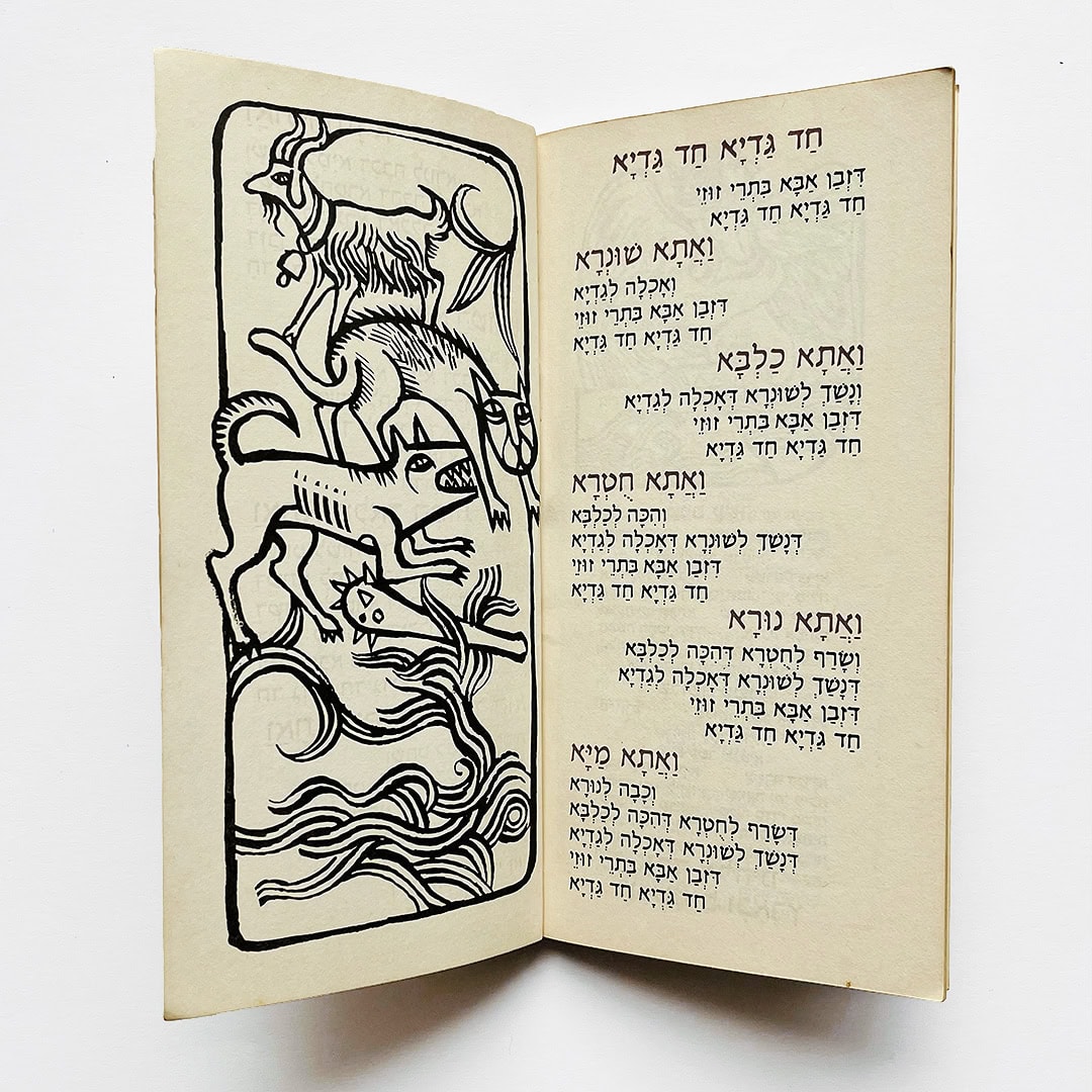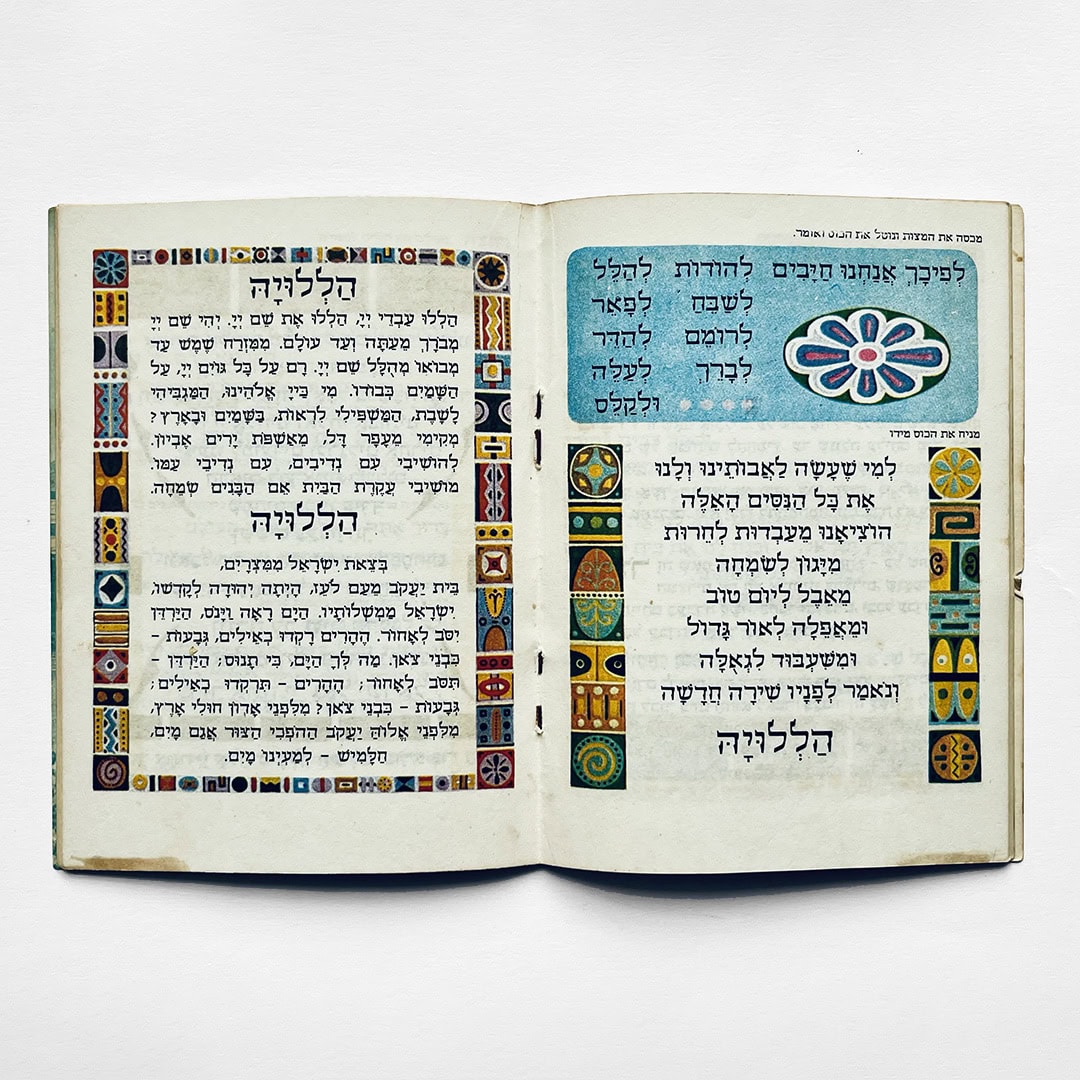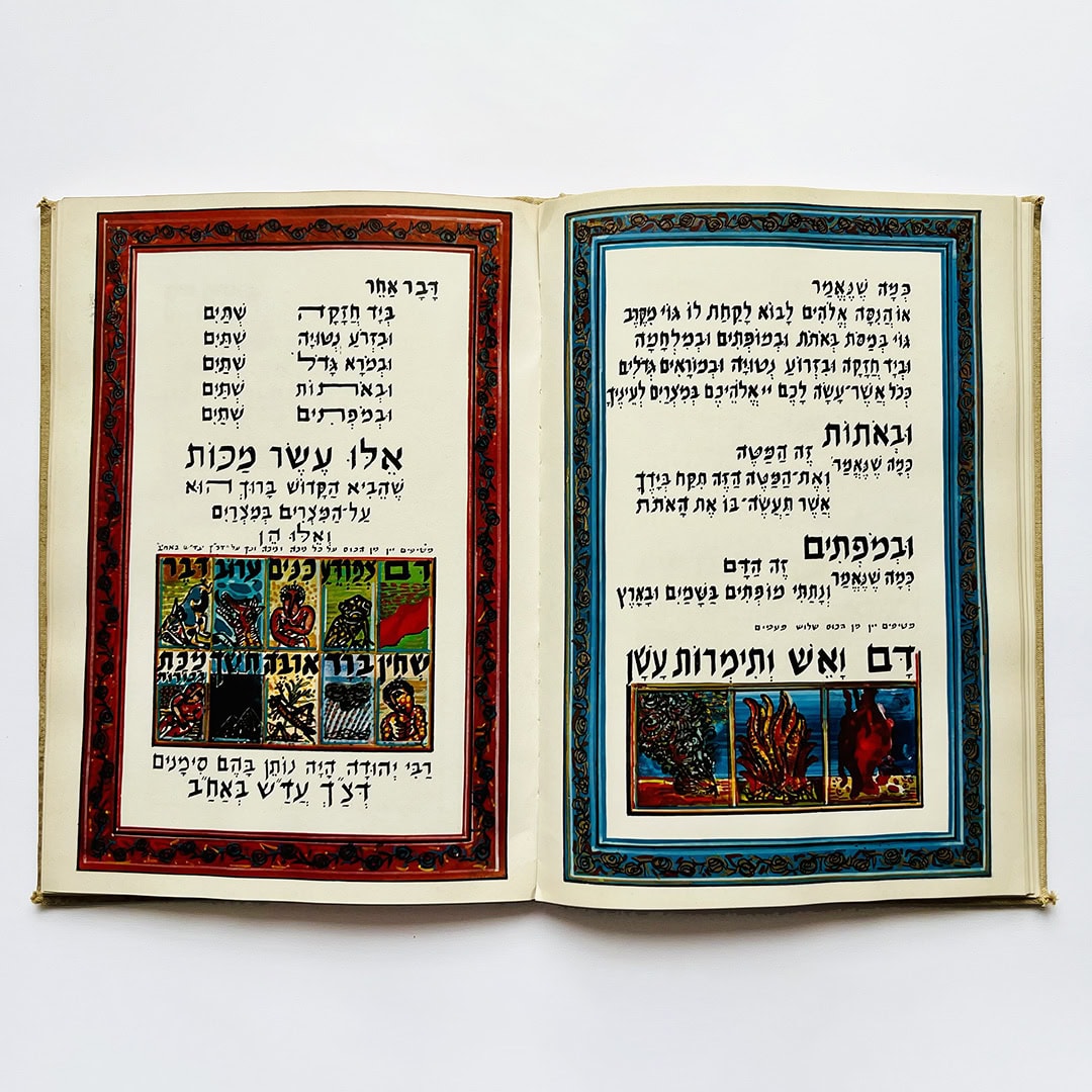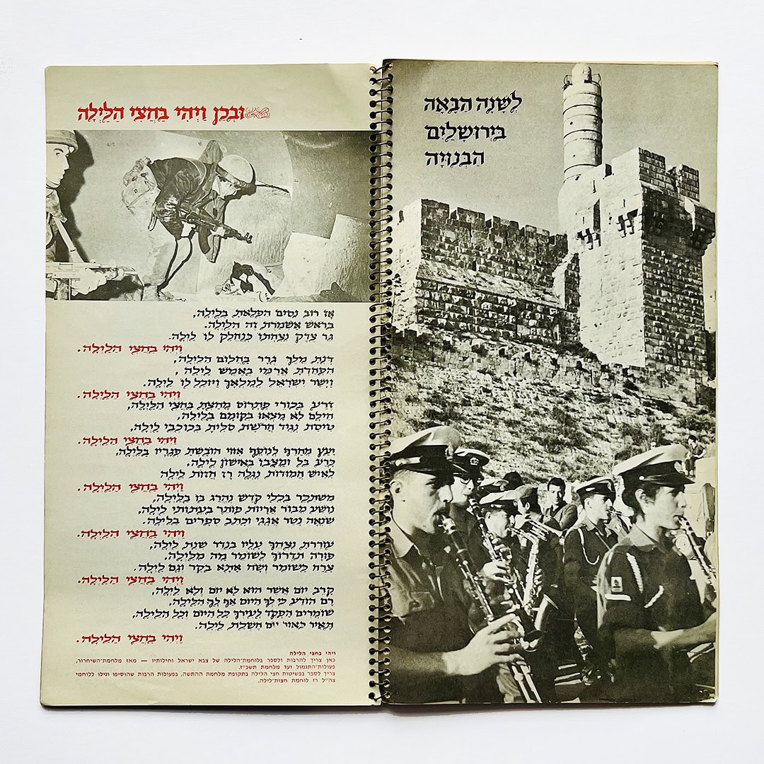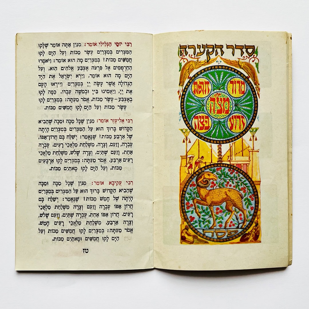 בידי שתי הגדות, לכאורה שונות זו מזו, אך שואבות השראה יחדיו ממקור טיפוגרפי. הראשונה, ״הגדה של פסח מעבדות לחרות״, שהוציא ניסן פלג ב־1971, היא מסמך תקופה מרתק. ההגדה בפורמט מוארך, מחוברת בספירלה ומעוטרת בגרפיקות איוריות פשוטות, לצד תמונות ממלחמת ההתשה וששת הימים, שצילמו נחום גוטמן, דורון אברהמי וצלמי דובר צה"ל. פרשנויותיו של אלי לנדאו מחברות את סיפור ההגדה למציאות הצבאית של אותם ימים, בעוד שהמאייר צבי אלוני כתב את גוף ההגדה ביופי וכישרון רב.