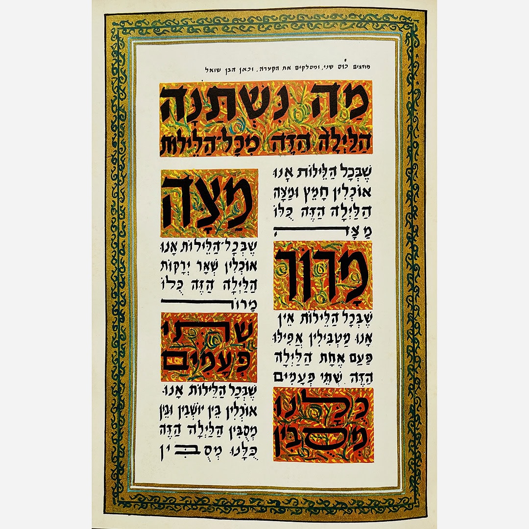 בין סמטאותיה הקסומות של ירושלים, מסתתר מקום מרגש במיוחד: בית היתומות הכללי, אשר הוציא לאור וחילק לתורמיו לפחות שלוש הגדות שהצלחתי למצוא. בידי אחת מיוחדת במיוחד, שעוצבה, אויירה ונכתבה על ידי לא אחר מאשר משה גוטמן. כן, כן, אותו גוטמן שאתם מכירים מגופני מערכת אופיס. כאמור, עבור גוטמן - עיצוב האות העברית היה שליחות קודש. גוטמן האמין שיש לו "נשמה מתאימה לפיתוח האותיות של לשון הקודש". ואכן, בהגדה זו הוא הצליח לשלב בין קדושת הטקסט העתיק לבין חדשנות עיצובית מודרנית.