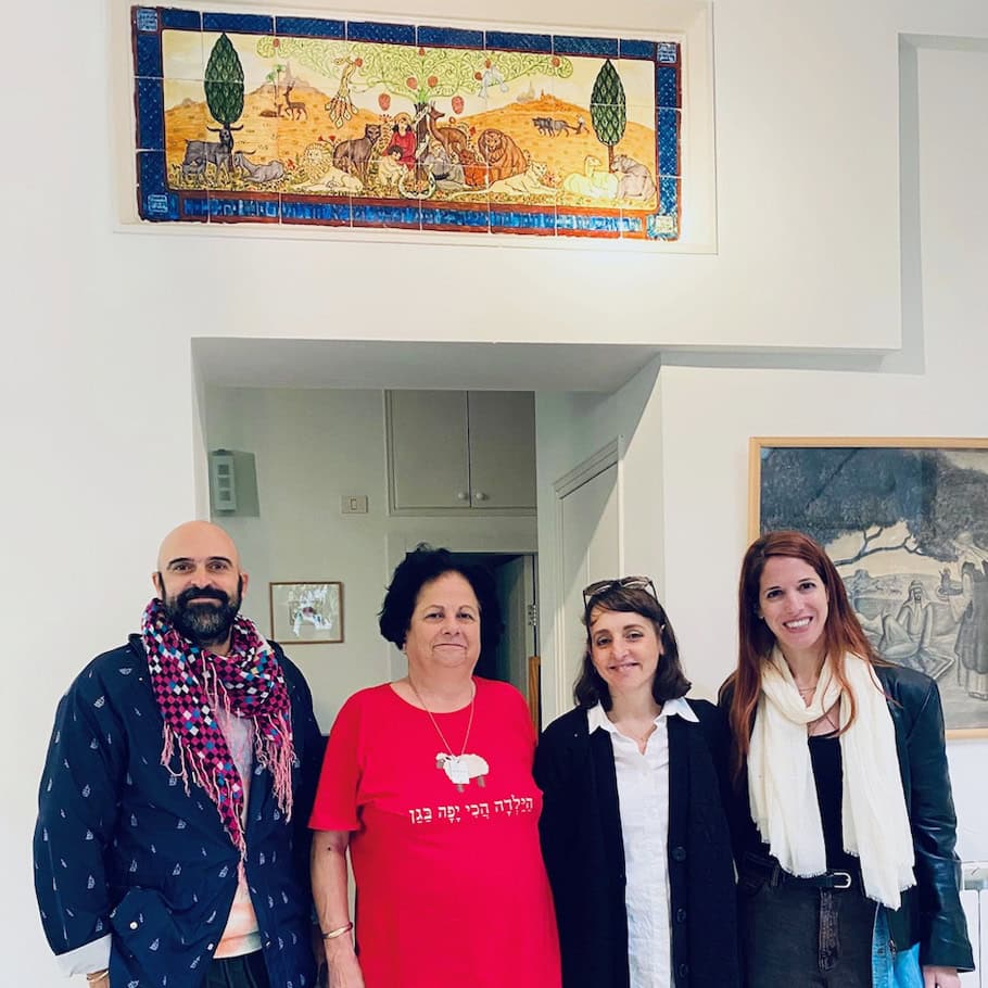 מימין לשמאל: רינת גלבוע, ליאורה שירר־סער, מלי דורון ואיתם טובול בביתו של זאב רבן