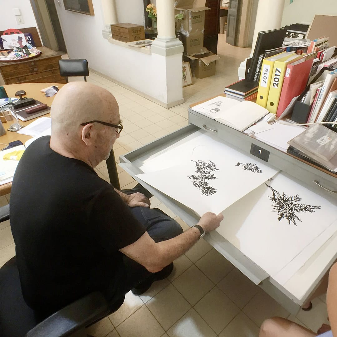 כמעצב גרפי צעיר אז, הרגשתי יראת־כבוד (ואפילו לחץ!). לבקר את טרטקובר, שניסח שפה חזותית שהשפיעה על המרחב הציבורי הישראלי, לימד דורות של מעצבים, וחתום על כמה מהכרזות, הסמלים, עטיפות התקליטים והספרים האיקוניים ביותר פה. ואני צריך לעצב לו קטלוג לתערוכה… אבל אולי משום שהתערוכה עסקה ברישומים וציורים ללא מטען פוליטי מובהק, הביקור הפך לחוויה אינטימית שהציגה צד אמנותי שאותו לא חדל ליצור לאורך כל חייו.