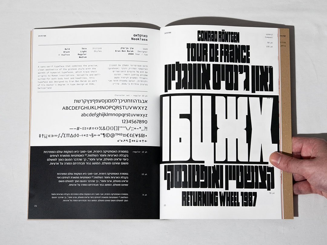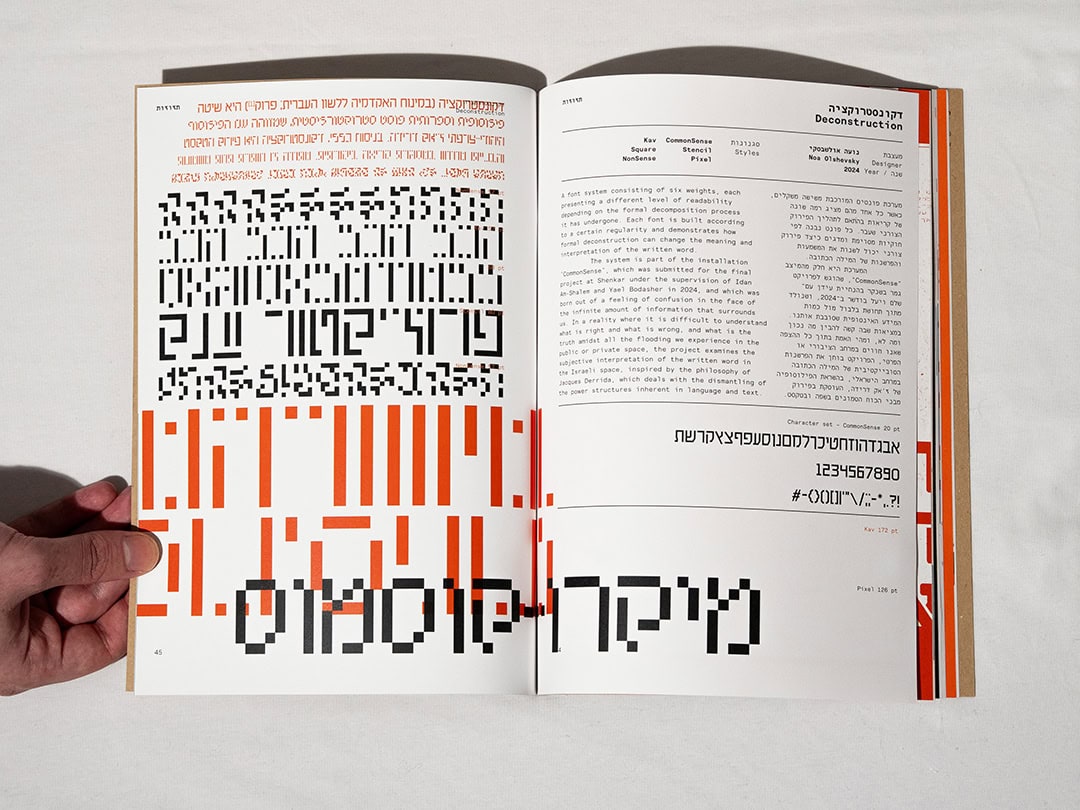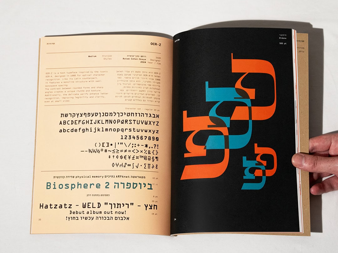 "תזוזות" הוא פנזין רחב־היקף שיצרתי, ובו אני מציג 18 פונטים עכשוויים של מעצבים ישראלים צעירים. את המהדורה הדו־לשונית הזו אספתי, תיעדתי והוצאתי לאור דרך ההוצאה שלי - "מינוס ספרים". לכל פונט יש כפולה ובה מוצגים תווי הפונט, הדגמות ועיצוב מדויק. הפנזין ראה אור בשתי גרסאות – אחת על נייר קרם והשנייה במהדורה מיוחדת עם הדפס רשת. עבורי זהו מסמך מרתק על עיצוב עברי עכשווי, שאני מקווה להמשיך ולהפיץ.
